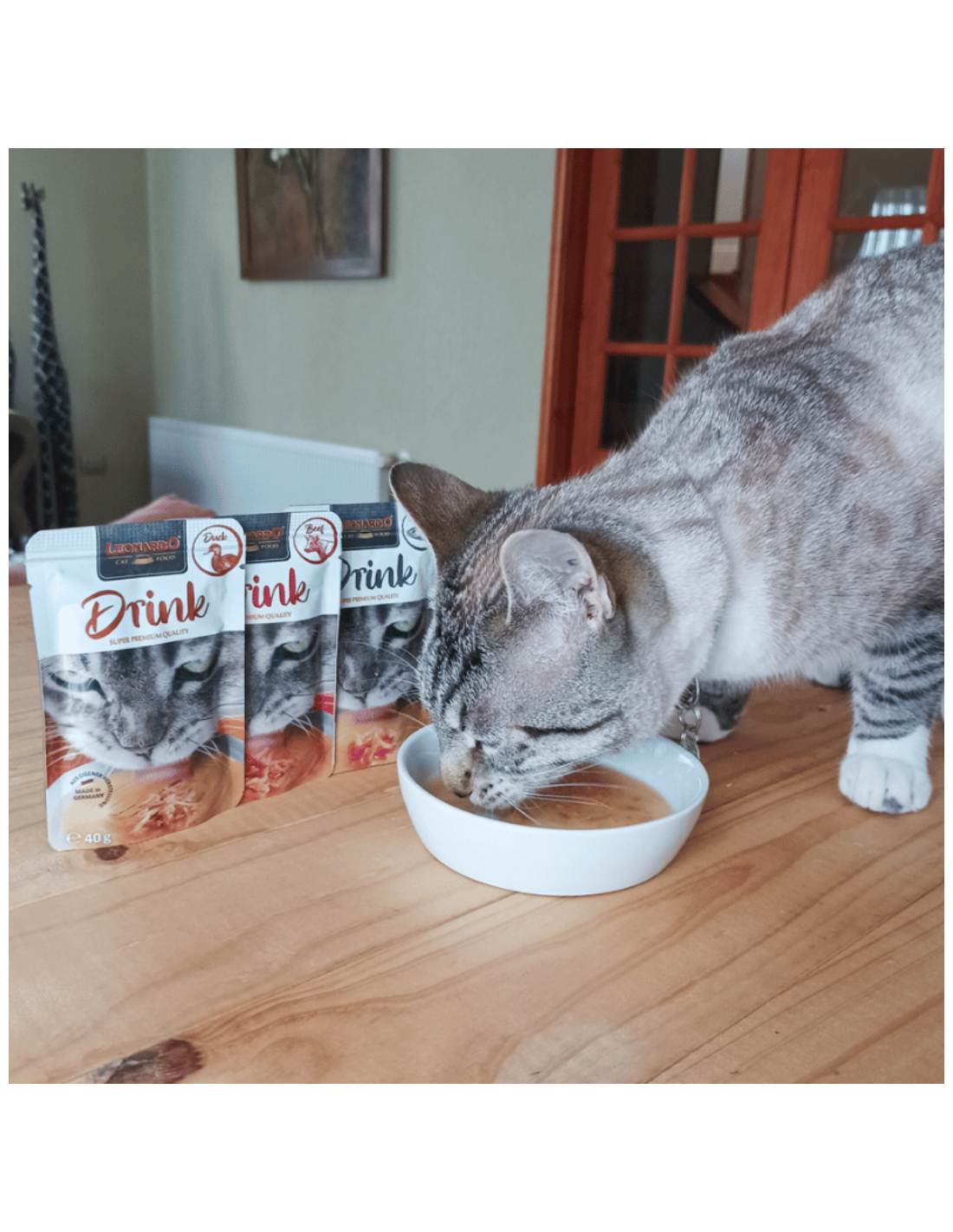Los gatos a menudo son reacios a beber y necesitan un poco de motivación adicional. Leonardo Drink es un caldo de gran sabor con pequeñas trazas de carne. Complemento de la dieta diaria.
