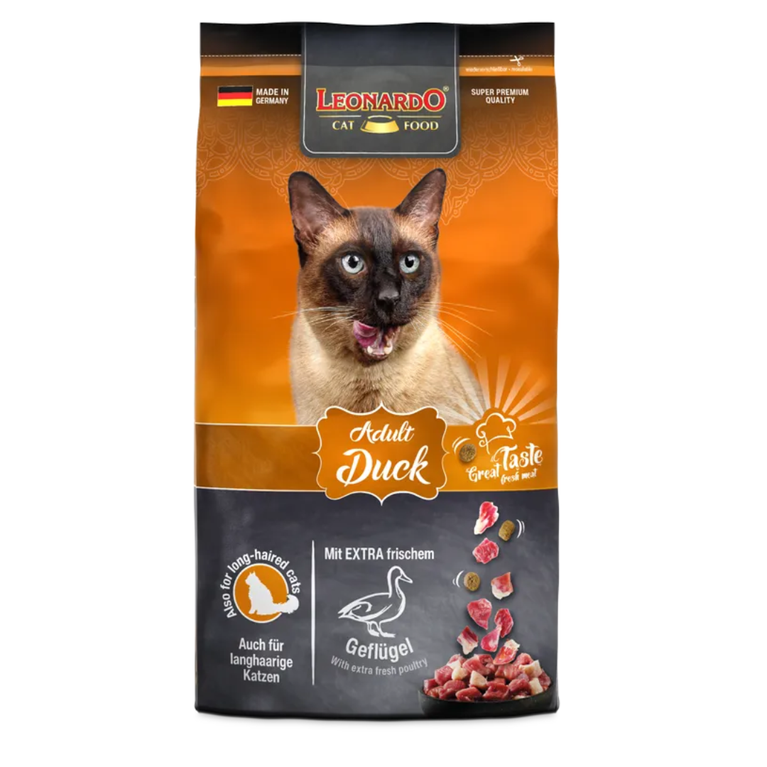 LEONARDO® Adult Duck es una variante de delicioso sabor para los gatos amantes de la carne de ave. Además, la receta se ha mejorado con semillas de chía y con sabroso krill, el crustáceo procedente de la Antártida. Su alto contenido en ácidos grasos omega-3 y lecitina contribuye a conservar una piel sana y un pelaje brillante.